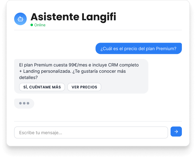 Automatiza consultas, califica leads y mejora la experiencia del cliente con asistentes virtuales potenciados por IA.