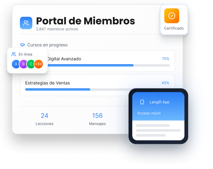 Espacios exclusivos con foros, chat en vivo, contenido premium y herramientas de colaboración.